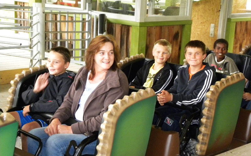 Im Restaurant des Familienparks erwartete uns eine sehr angenehme Atmosphäre zum Mittagessen: eine freundliche Bedienung und köstliche Speisen. Nach der Hauptspeise merkte man den Kindern an, dass sie es kaum mehr erwarten konnten, mit der Achterbahn zu fahren, die Rutschen zu testen, sich in den Mini-Zug zu setzen, Edelsteine zu suchen und zu waschen,… Manche verzichteten auf die Nachspeise und drängten in den Park. Bei diesem großen Angebot für die verschiedenen Altersstufen verging der Nachmittag wie im Flug. Große und Kleine fanden Vergnügungsmöglichkeiten – auch die Erwachsenen waren nicht nur als Begleiter dabei. Am tollsten war es natürlich, wenn man einmal neben dem Herrn Pfarrer in der Achterbahn sitzen durfte. Gegen drei Uhr fanden sich alle zu einer Kaffeejause im Restaurant ein – es war möglich, die mitgebrachten Kuchen und Getränke zu genießen. Anschließend waren vor allem die Kinder wieder so fit, dass sie noch einmal auf Erkundungs- und Spieletour gingen. Manche Erwachsene suchten sich ein ruhiges Plätzchen, um sie zu beaufsichtigen.