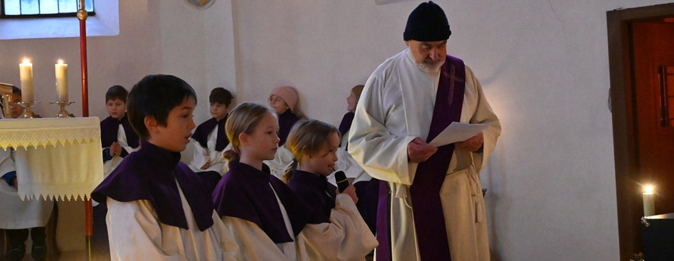 Es ist immer ein besonderer Tag, wenn die VS Bad Häring in der Adventzeit um 7.00 Uhr in der Früh einen Gottesdienst feiert. In diesem Jahr setzten wir uns mit dem Thema Gnade auseinander. "Gott ist gnädig" bedeutet der Name Johannes - und von der Verkündigung seiner Geburt hörten wir im Evangelium. Herr Diakon Franz Reinhartshuber beschrieb ihn dann als Mahner, wie wir ihn öfter einmal brauchen. Wie hilfreich kann es sein, wenn uns jemand darauf hinweist, dass wir den falschen Weg eingeschlagen haben. Mehrere Kinder hatten sich mit Sprechtexten vorbereitet, um uns das Thema nahezubringen.