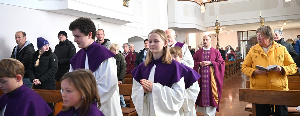 Am ersten Adventsonntag begrüßte Herr Pfarrer Stefan Schantl die Feiergemeinde und wünschte eine gutes neues Jahr - ein gutes neues Kirchenjahr, das anders als das Kalenderjahr mit dem ersten Adventsonntag beginnt. Bereits am Vorabend waren Adventkränze gesegnet worden und auch am Sonntag brachten noch Familien Kränze und Kerzen mit. Auf den festlichen Gottesdienst mit Adventkranzsegnung hatten sich auch die neuen Ministranten und Ministrantinnen gut vorbereitet, um ihn mitzugestalten und sich der Feiergemeinde mit ihrem Dienst vorzustellen. In seiner Ansprache wies Herr Pfarrer Stefan Schantl auf einige Sätze in den Lesungstexten hin: Jesus will uns nahe sein - so kam es in der zweiten Lesung zum Ausdruck. Wenn im Evangelium von schlimmen Geschehnissen die Rede ist und die Wiederkunft Christi am Ende der Zeiten angekündigt wird, so soll hinter allem die Hoffnung auf das ewige Leben bei Gott stehen. Es ist gut, im Hier und Jetzt Probleme, Unrecht und Not zu sehen und zu helfen, soweit es möglich ist, oder eigene Sorgen zu bewältigen. Aber was man nicht schafft, darf man Gott anvertrauen. Dieser Trost ist es, der Christen froh sein lässt. Nach diesen Gedanken sprach Herr Pfarrer Stefan Schantl ein Segensgebet für die neuen Ministranten und bestärkte auch die älteren damit. Anschließend spendeten er und Herr Diakon Franz Reinhartshuber noch jedem einen Einzelsegen.
