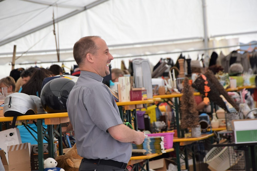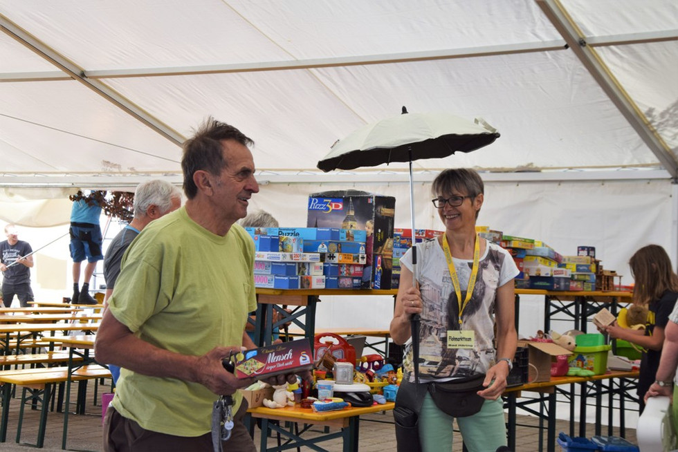 Zwischen Büchern, Spielzeug, Geschirr, Elektrogeräten, Möbeln und Kleidern entstand eine fröhliche Verkaufsstimmung gemischt mit guter Unterhaltung.