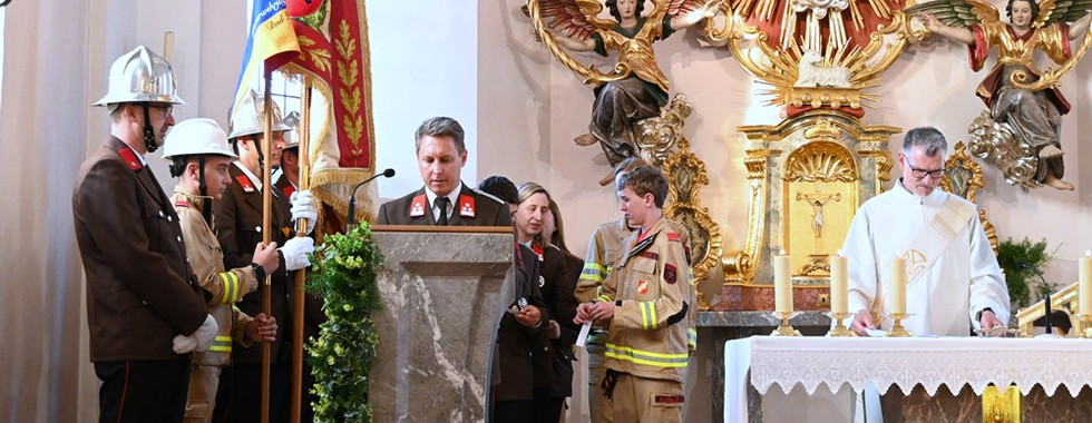 Vor dem Schlusssegen bedankte sich Herr Diakon Stefan Mair für das Mitfeiern, besonders auch bei der KMK Bad Häring für die musikalische Gestaltung des Gottesdienstes. Und er erbat Gottes Schutz und Segen auf die Fürsprache des heiligen Florian für ein gutes Feuerwehrjahr.