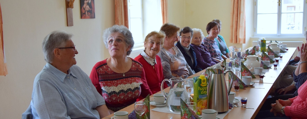 Es war Zeit und ein ehrliches Bedürfnis, den Frauen, die sich um die Kirchenreinigung, den Blumenschmuck und die Wäsche kümmern, danke zu sagen und ihnen etwas Gutes zu tun: So waren sie im Pfarrhof zu einem Kaffeenachmittag eingeladen. Herr Pfarrer Stanislav Gajdoš drückte seine große Freude über die saubere und schön geschmückte Kirche und alle Dienste dafür aus - und schloss die Frauen in sein Dankgebet zu Beginn der kleinen Feier ein. Als er sich nach der Kaffeejause verabschiedete, lud Herr Pfarrassistent Franz Reinhartshuber ein, ihm das Lied "Wahre Freundschaft" zu singen - Freundschaft, die der Herr Pfarrer bei uns bereits spürt und vertiefen möchte. Auch Herr Kaplan Thomas Ackermann stieß etwas später zur bereits gemütlich plaudernden Runde - er ließ sich Kaffee und Kuchen schmecken, während wir bereits mit einem Gläschen Wein anstießen, um das DANKE zu bekräftigen. Im Laufe des Nachmittags wurden noch mehrere Lieder gesungen, die zur guten Stimmung beitrugen - kräftig unterstützt vom Häringer Frauendreigesang.