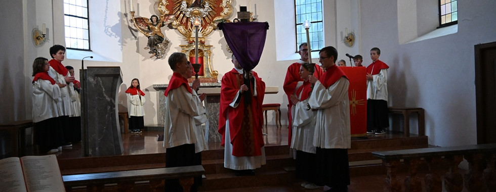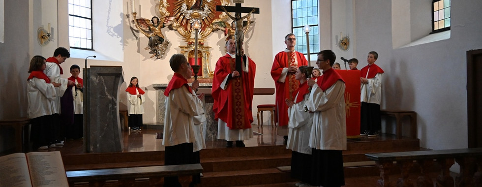 Den zweiten Teil des Gottesdienstes bildete die Kreuzverehrung - das verhüllte Kreuz wurde von Ministranten in einer feierlichen Prozession durch das Kirchenschiff in den Altarraum getragen, wo es von Herrn Pfarrer Stefan Schantl enthüllt wurde. Anschließend verehrten Geistliche, Ministranten und die Feiergemeinde das Kreuz mit einer Kniebeuge.