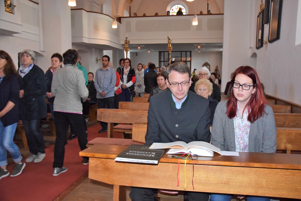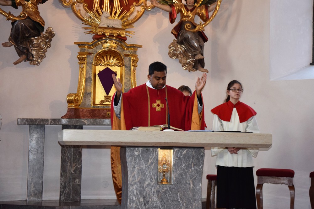 Am Gründonnerstag zelebrierte Herr Kooperator Binu John die Feier vom Letzten Abendmahl für uns. In seiner Ansprache machte er auf die Bedeutung von Zeichen aufmerksam. In seiner Kindheit hatte er stets zur Osterzeit einen gebackenen Reiskranz von seiner Tante erhalten – im Nachhinein betrachtet, ein Zeichen ihrer Liebe zu ihm. Zeichen sind wichtig und man sollte ihre Bedeutung verstehen, so auch die der Fußwaschung – Jesus hat sich als Dienender erwiesen und verlangt von seinen Jüngern, selbst Dienende zu werden. Und er hat die Feier der Eucharistie eingesetzt – deren Bedeutung heute manchmal zurückgedrängt wird, wenn so viel anderes rund um die Messe geplant wird, das Musikalische, der Blumenschmuck, die Lektorendienste, die Agape… Die Eucharistiefeier wieder als die Mitte unseres Glaubens zu sehen, weil Jesus zu uns kommt, uns stärken und einen will, das sollte unser Anliegen sein.