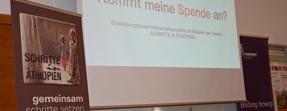 Zunächst erzählte er von seinem Weg zur Caritas Vorarlberg und weiters von der Gründung des Vereines "Schritte in Äthiopien", der seit 2010 mit einigen Schwerpunkten Projekte fördert. Als Voraussetzungen für das Ankommen von Spenden nannte er die Zusammenarbeit mit den örtlichen Partnern, die ehrenamtliche Tätigkeit des Vereinsvorstandes sowie die regelmäßigen Kontrolle der Projekte und auch die Überprüfung der Verwendung der Spendengelder.