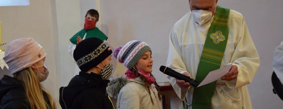 In den Kyrierufen dachten die Kinder über die Bedeutung des Gerufenwerdens und die Salbung nach. In der Ansprache erläuterte Herr Pfarrer Stefan Schantl die Salbung von König Saul - eine Heiligung durch Gott, die uns heute noch bei der Taufe zuteil wird. Und wie bei der Taufe Jesu gilt uns der Zuruf Gottes: Du bist mein geliebtes Kind, an dir habe ich mein Wohlgefallen gefunden.