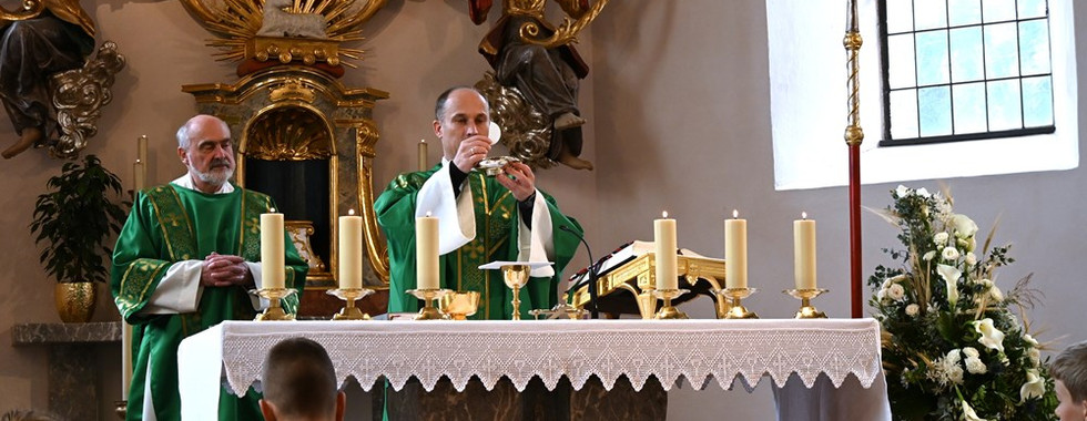 Im Anschluss an die heilige Messe waren alle zur Agape eingeladen - aufgrund des Regens war sie im Pfarrsaal vorbereitet. Dort kam noch eine fröhliche Stimmung in Dankbarkeit für die gemeinsame Messfeier aus. Auch aus den anderen Gemeinden des Pfarrverbandes waren mehrere Familien gekommen.