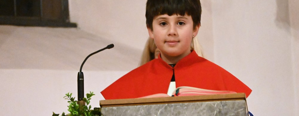 Herr Pfarrer Stefan Schantl freute sich über die Erwachsenen und Kinder, die mitfeierten und begrüßte alle herzlich. In seiner Ansprache hob er zwei Sätze in Zusammenhang mit den Lesungstexten hervor: "Was wird aus diesem Kind wohl werden?", fragten sich die Menschen damals beim Jesuskind und auch wir heute fragen das für jeden von uns. Niemand weiß es - Gott hat unseren Lebensplan in der Hand und führt uns durch helle und dunkle Zeiten, auf steilen und ebenen Wegen. Und dazu passt die Frage aus dem Alten Testament: "Wer kann vor ihm (vor Gott) bestehen?" Das ist eine Frage, die erschrecken kann, doch Gott ist keiner, der uns Angst machen will, denn er liebt uns. Wer seine Liebe erwidert und ihm vertraut, kann allezeit vor ihm bestehen, weil er auch barmherzig ist.