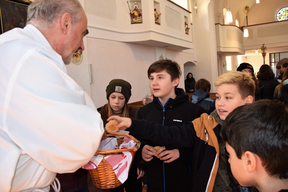 Vor dem Schlusssegen bedankte sich Herr Pfarrassistent Franz Reinhartshuber bei Herrn Kaplan Binu John für die festliche Messe und bei den Firmlingen für ihr Mitgehen und Mitfeiern. Zur Stärkung durften sie ein Stück Brot mit auf den Heimweg nehmen.