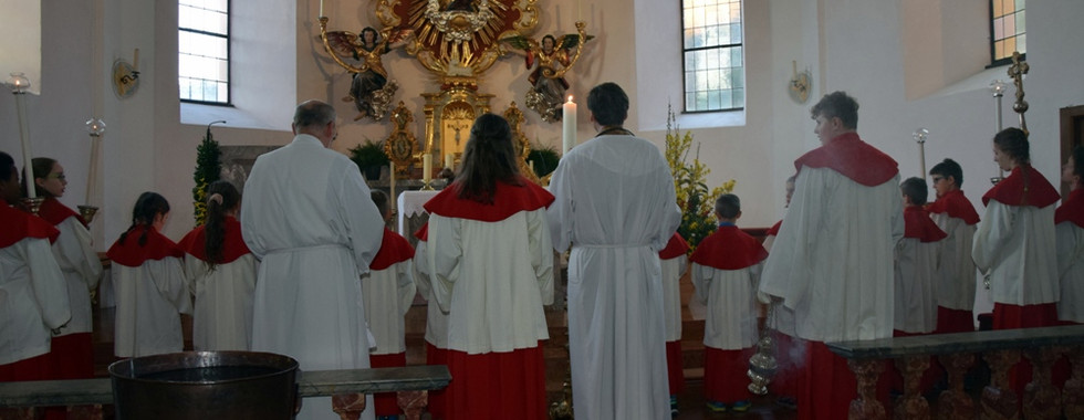 Nach der Allerheiligenlitanei wird das Taufwasser geweiht. Bei diesem besonderen Ritus wird die geweihte Osterkerze dreimal in das Wasser gesenkt, wobei der Priester spricht: "Durch deinen geliebten Sohn steige herab die Kraft des Heiligen Geistes." Nach dem Taufversprechen dürfen sich die Ministranten mit dem Weihwasser bekreuzigen und anschließend besprengt der Herr Pfarrer die Gottesdienstbesucher.