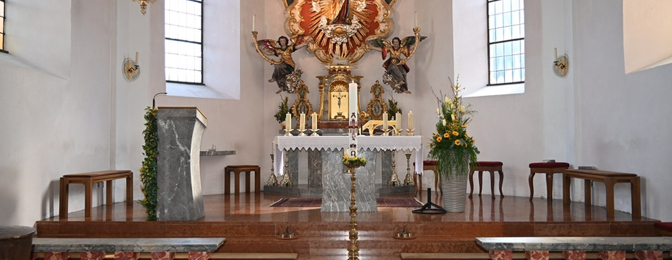 Bereits einige Zeit vor Beginn der Messe war die Kirche festlich vorbereitet und die Kerzen waren entzündet.