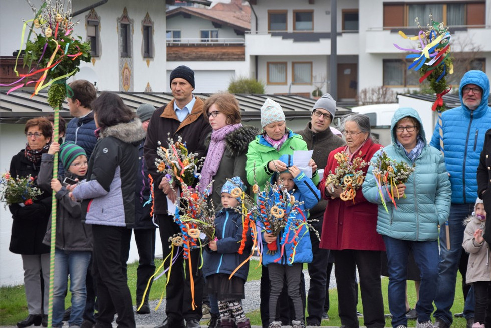 Windig und kalt war es - aber wir feierten in fröhlicher Stimmung den Einzug Jesu in Jerusalem: Mit vielen Ministranten zogen Herr Pfarrer Stefan Schantl und Herr Diakon Franz Reinhartshuber zur Aussegnungshalle, wo der Herr Pfarrer die Palmzweige und Palmbuschen segnete. Anschließend verkündete Herr Diakon Franz Reinhartshuber das Evangelium vom Einzug in Jerusalem. Danach wendete sich Herr Pfarrer Stefan Schantl in seiner kurzen Ansprache vor allem an die Kinder, indem er mit ihnen die Bedeutung des Esels als Reittier für einen König, der Frieden bringen will, erarbeitete. Singend zog dann die Feiergemeinde zur heiligen Messe in die Pfarrkirche ein - die wie stets an solchen Tagen noch größer sein könnte. Und da zeigte das Evangelium, die die Passion nach Lukas zum Inhalt hatte und mit verteilten Rollen gelesen wurde, dass eine Stimmung rasch kippen kann: Hatten die Menschen vorher Jesus noch zugejubelt, so forderten sie nun seinen Tod. Wie Herr Pfarrer Stefan Schantl in der Ansprache erläuterte, konnten sie die Botschaft des Friedenskönigs nicht verstehen - des Gottes, der in unsere Herzen kommen will und uns kennen lernen will, der sich freut, wenn wir zu ihm kommen - so wie es die vielen Mitfeiernden an diesem Tag tun.