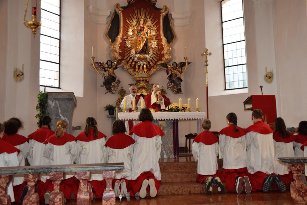 Einige Kinder durften Fürbitten sprechen, die Jesus Leiden für uns und seine Versöhnungsbereitschaft noch einmal aufgriffen. Anschließend an die sehr feierlich zelebrierte Eucharistiefeier und dem Schlusssegen wurde auf dem Kirchvorplatz trotz der Kälte noch ein wenig geplaudert - und vor allem dem Herrn Pfarrer für die schöne Feier der Palmsonntagsliturgie gedankt.