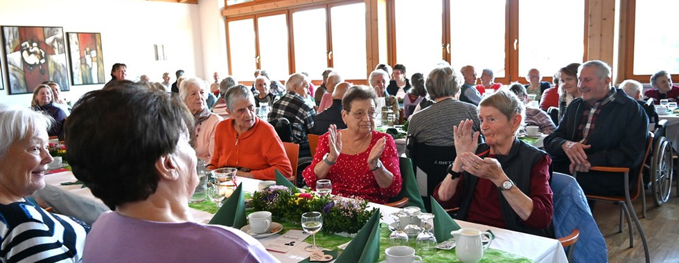 Vor drei Jahren war der letzte Seniorennachmittag, zu dem der Sozialkreis der Pfarre am Elisabethsonntag traditionellerweise einlädt. Umso mehr freute sich Sandra Aufinger als Verantwortliche für die Planung und Organisation an diesem Sonntagnachmittag viele Senioren und Seniorinnen begrüßen zu können, die der Einladung gefolgt waren. Diesen Grußworten schlossen sich Herr Pfarrer Stefan Schantl und Herr Diakon Franz Reinhartshuber an. Die schwungvolle Musik durch die Rudersburg Musig ließ staunen, zumal vier der Musiker noch jung an Jahren sind. Oft wurde begeistert mitgeklatscht. Solostücke mit der Ziehharmonika begeisterten ebenso wie das Harfenspiel des einzigen "Madls" der Gruppe. Als weiterer Gast der Programmgestaltung kam Katharina Kitzbichler nach Bad Häring und erfreute die Herzen mit ihren zum Teil besinnlichen Texten und auch mit den vielen lustigen, bei denen man herzhaft lachen konnte. So war es interessant, das Mienenspiel des Herrn Pfarrer festzuhalten, als es darum ging, ob Petrus wohl eher den Taxifahrer oder den Priester in den Himmel lässt. Als Petrus sein Buch aufschlug, sah er klar verzeichnet, dass dem Taxifahrer sofort Einlass zu gewähren ist - mit seiner rasanten Fahrweise hatte er unzählige Menschen zum Beten gebracht. Beim Priester kamen ihm Zweifel, denn bei seinen Predigten waren viele Menschen eingeschlafen. Nach dem ersten Programmteil war es Zeit für Kaffee und Kuchen - fleißige Helferinnen hatten dafür gebacken und vorbereitet. Beim Bedienen kam man auch gut ins Gespräch und spürte die Freude über den Nachmittag. Anschließend lockerte ein Gläschen Wein die Stimmung noch mehr auf. Nach einem gelungenen Nachmittag bedankte sich Sandra Aufinger bei den Musikern und Kathi Kitzbichler, bei Kathi Wiesbauer für den Blumenschmuck, bei allen, die gekommen waren, und bei allen, die geholfen hatten, den Nachmittag zu gestalten. Herr Diakon Franz Reinhartshuber stimmte das Lied "Fein sein beinander bleibn" an, in das alle einstimmten, und Herr Pfarrer Stefan Schantl spendete den Schlusssegen.