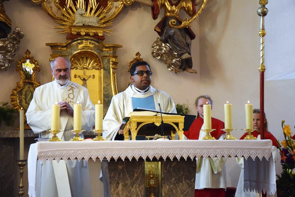 Dass Herr Kooperator Binumon John sich auf seine neue Aufgabe freut, merkte man in seinen Abschiedsworten, aber noch mehr kam zum Ausdruck, dass er sich bei uns sehr wohl gefühlt hat. Seinen besonderen Dank richtete er an Herrn Diakon Franz Reinhartshuber, der wie ein großer Bruder für ihn war, an PKR-Obmann Hans Höck für sein ruhiges Arbeiten und Dasein, wenn er gebraucht wird, an Susanne Winkler als beste Pfarrsekretärin, an den gesamten Pfarrgemeinderat und sein Wirken, das von einer guten Gemeinschaft getragen wird, und die ganze Pfarrgemeinde, die ihn so gut aufgenommen hat. Auch die Ministranten, die ihn mit einem Segenslied, einem Gedicht und vielen Süßigkeiten für seine neuen Ministranten verabschiedet hatten, vergaß er bei seinem Dank nicht und lobte ihre Treue in dieser großen Zahl, mit der sie die Gottesdienste würdig beleben.